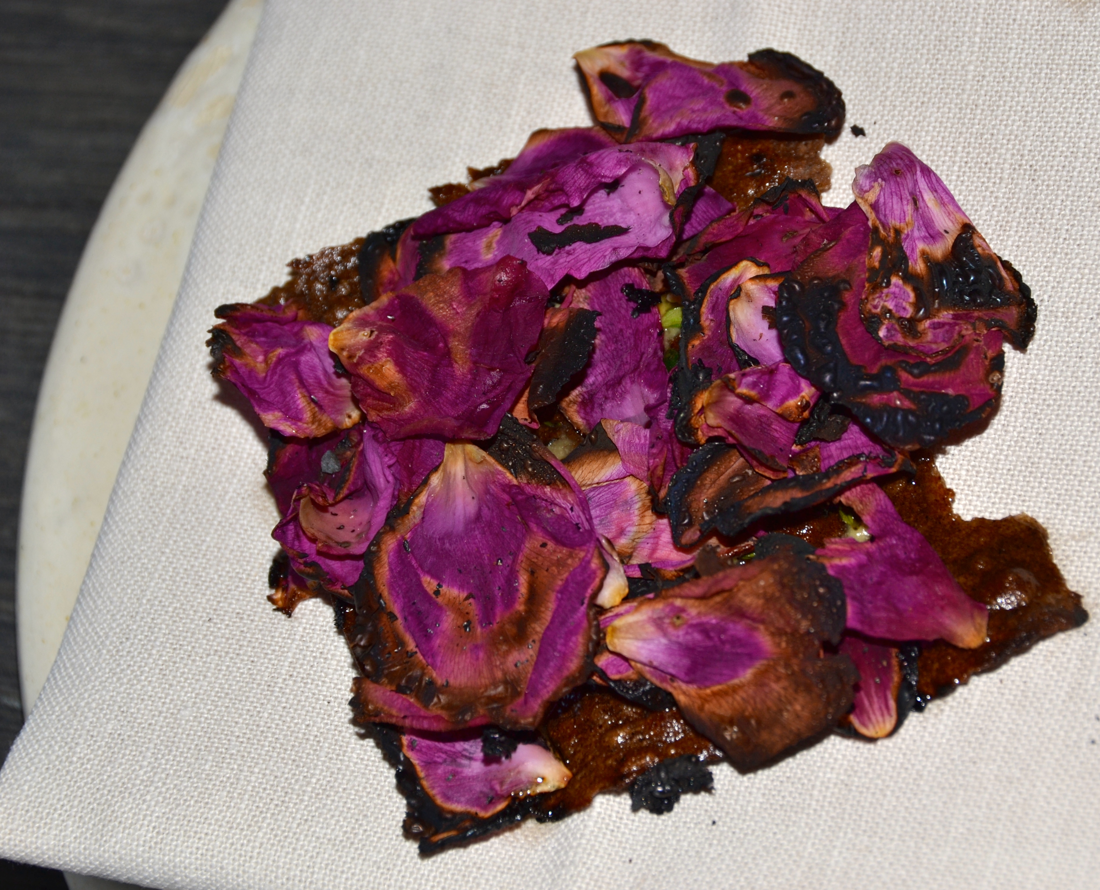 Crisp flatbread with grilled wild roses filled your mouth with a bouquet of flowers that was oddly pleasant.